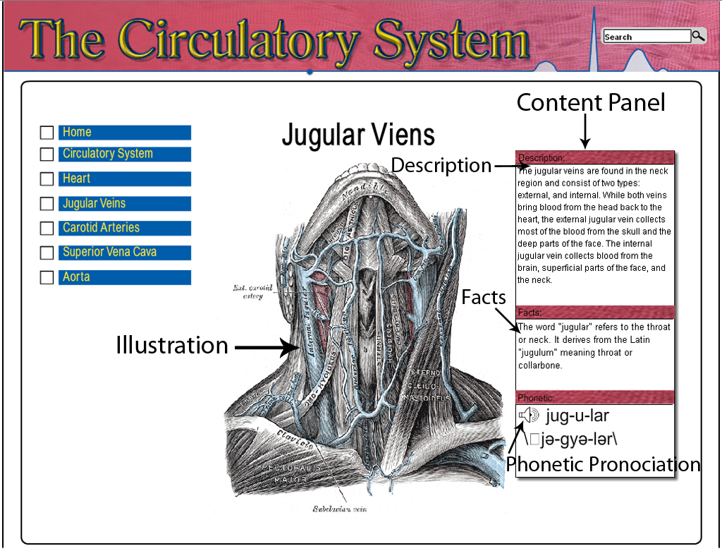 The Circulatory System is an interactive web site designed to help medical students learn about the human circulatory system.