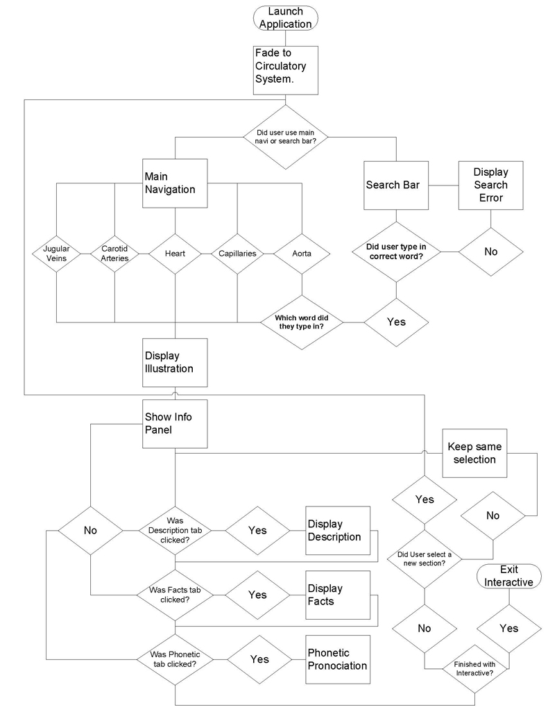 Next, I created a flowchart. The flowchart illustrated how the user would proceed when using the interactive, buy asking simple yes/no questions.