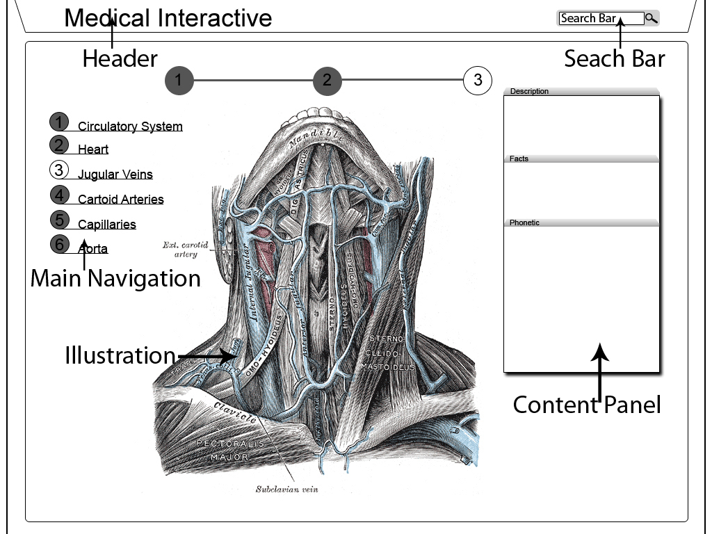 This interactive explores the major parts of the circulatory system, such as the Heart, Jugular Veins, and the Aorta.